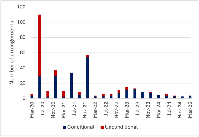 Figure 2: Number of IMF Commitments by Loan Type, January 2020–March 2025 (By Quarter)