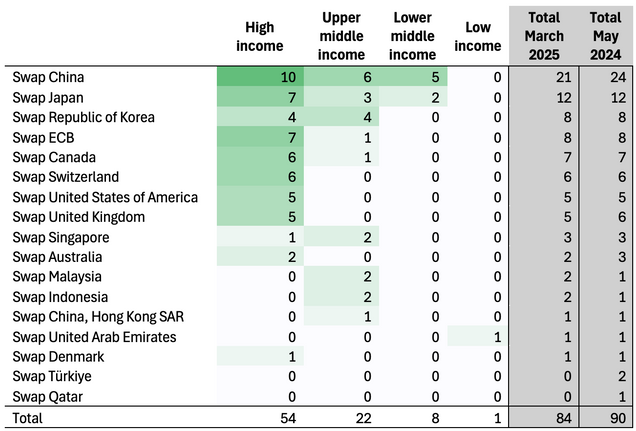 Table 3: Number and Distribution (By Income Group) of Valid Central Bank Currency Swaps as of March 31, 2025 and Comparison to May 2024