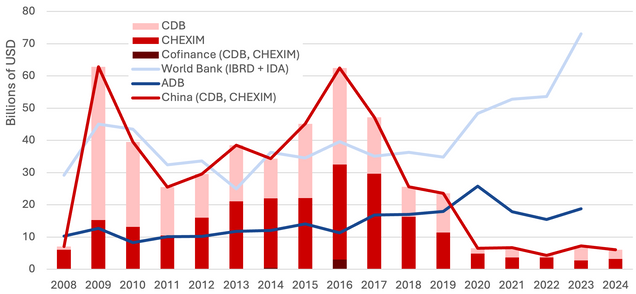 Figure 2: Sovereign Financing Commitments by China (CDB, CHEXIM), World Bank and ADB, by USD billion, 2008-2024
