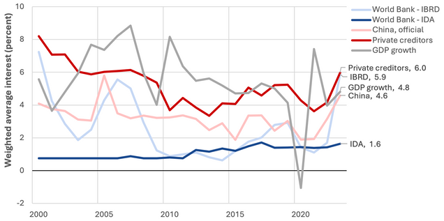 Figure 3: Weighted Average Interest Rate of LMICs’ New PPG Debt, by Creditors, 2000-2023