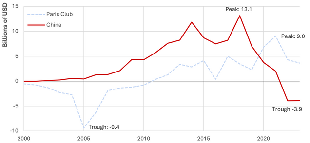 Figure 5: Net Transfers from China and Paris Club Lenders to IDA-Eligible Countries, 2000-2023