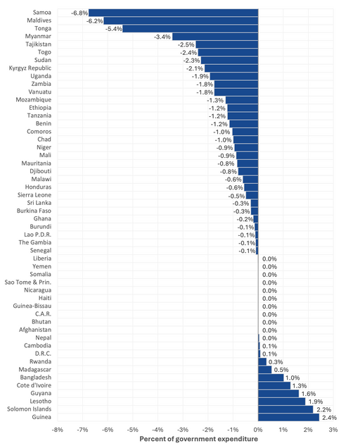 Figure 7: Net Transfers from China to IDA-Eligible Countries, 2023, % of Government Spending