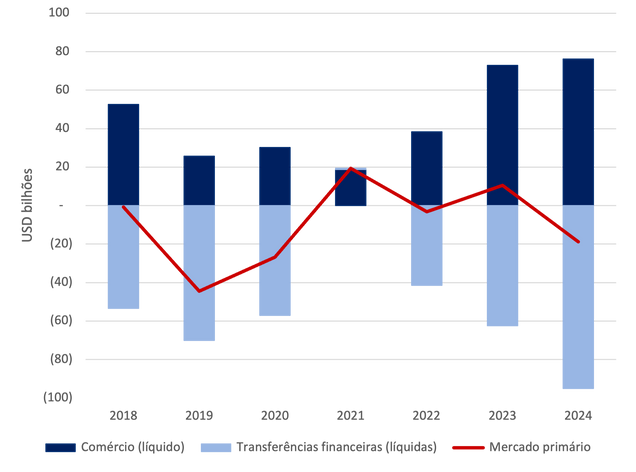 Figura 2: Mercado Primário de Câmbio, Brasil, USD bilhões, 2018–2024