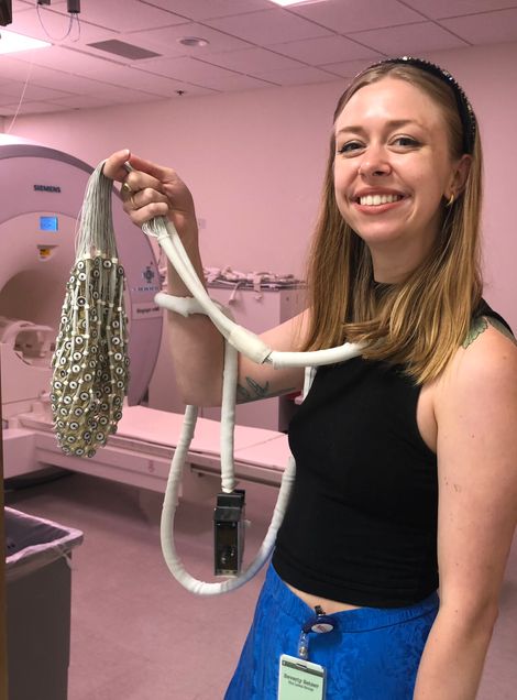 Lab experiments are central to Setzer’s current research under the supervision of Laura Lewis, a Hariri Institute Junior Faculty Fellow and an Assistant Professor in Biomedical Engineering. To study sleep, Setzer goes into the lab at night. While there, she measures other people’s brain waves using scalp electroencephalography (EEG) to understand how asleep or aroused they are. Setzer also uses simultaneous functional magnetic resonance imaging (fMRI) to look at the activity happening in different parts of their brains. Combining these data together enables Setzer and colleagues to determine what goes on inside the brain when people wake up from sleeping.
