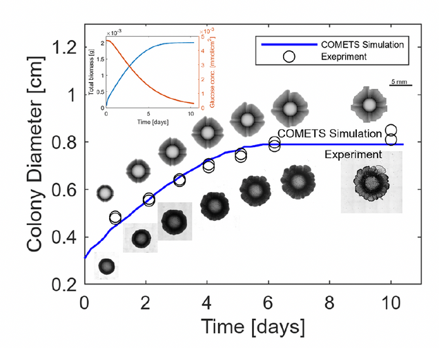 Using COMETS simulations, researchers showed how metabolism, nutrient use, and physical growth shape colony structure and genetic diversity