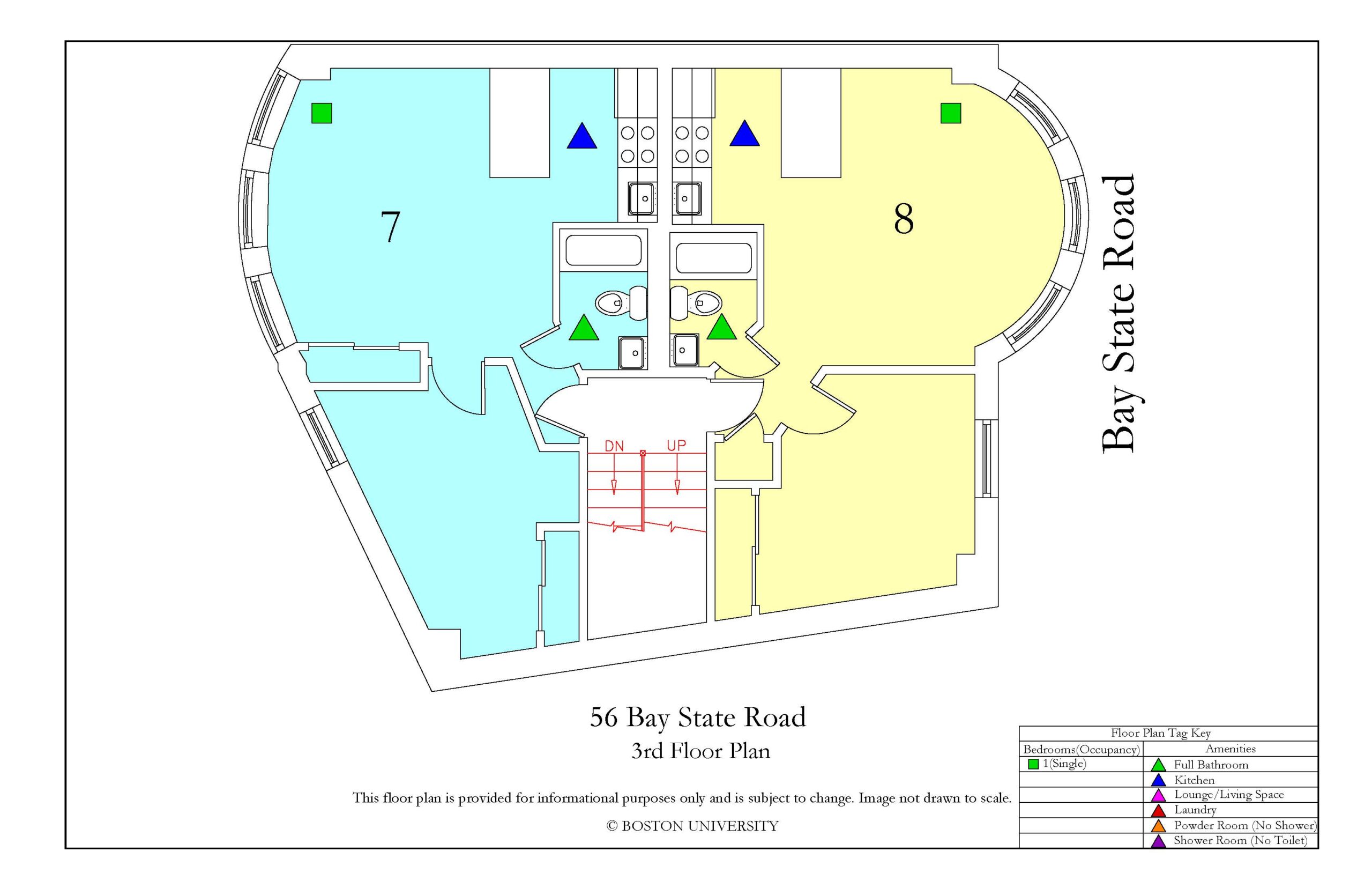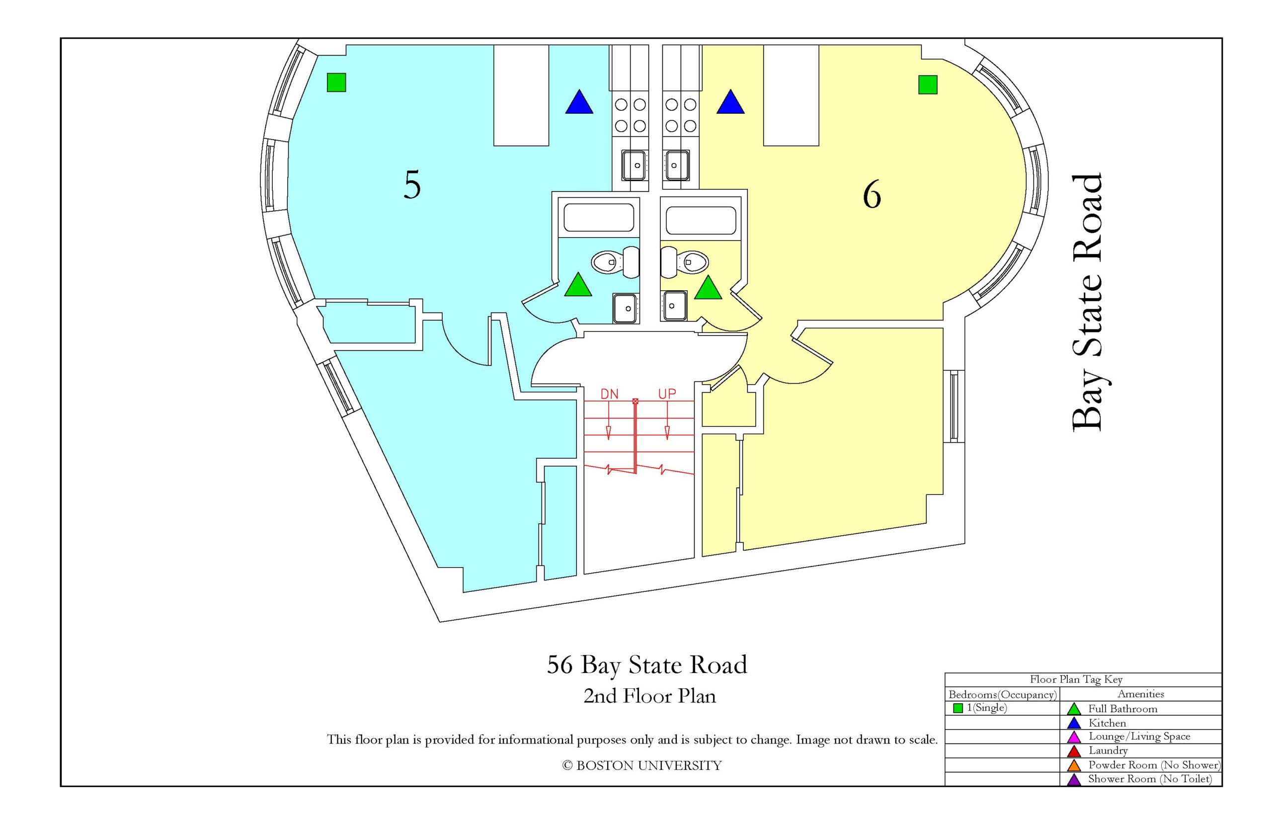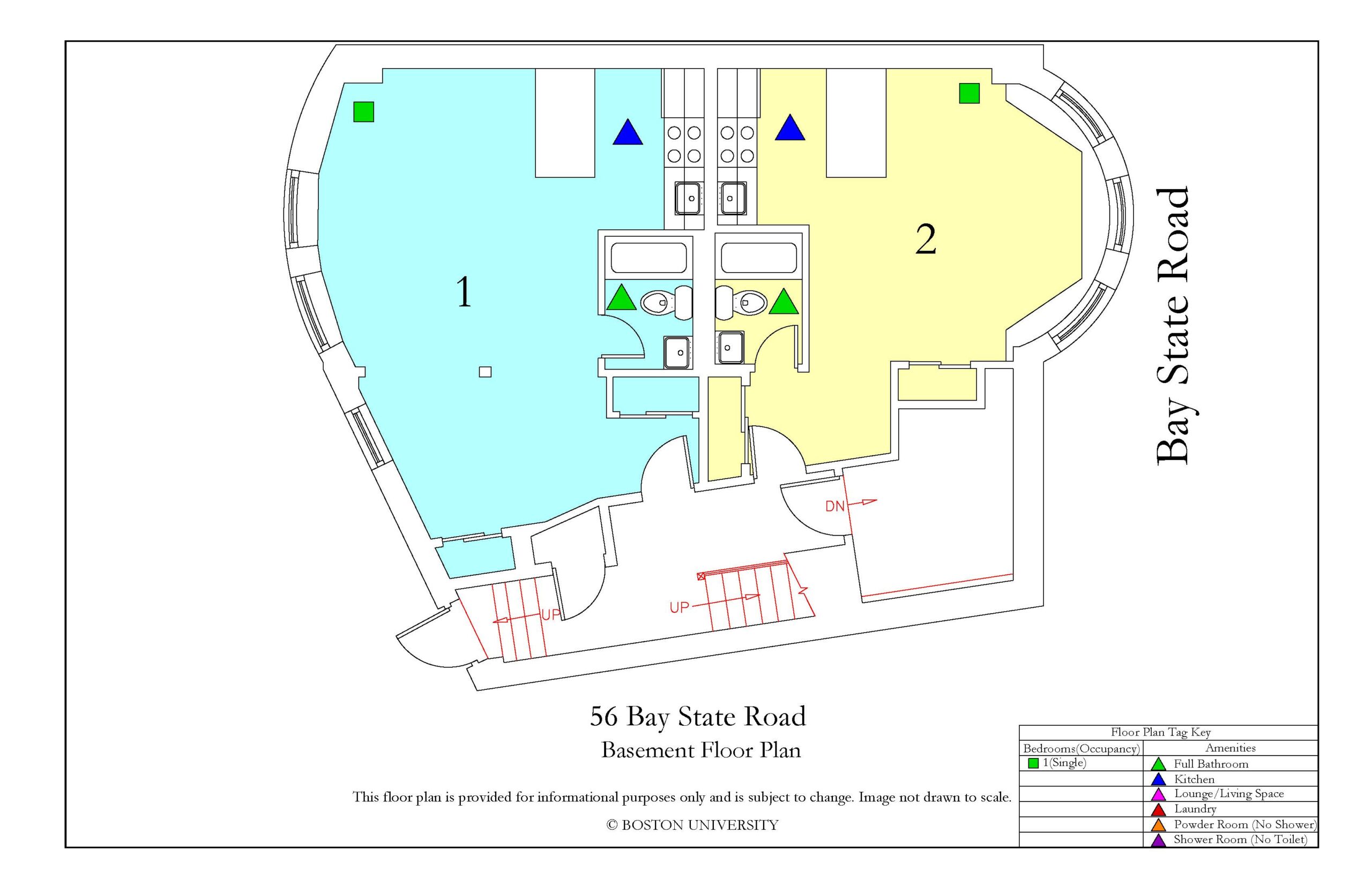 The building sits on leafy Bay State Road in BU’s East Campus. At one end, East Campus puts you right at the heart of BU’s Charles River Campus classrooms, labs, libraries, performances, and student amenities. At the other, you’re on the edge of Kenmore Square, a public transportation hub and the gateway to Fenway Park and its surrounding nightlife. Just beyond Kenmore lies Back Bay, with a bevy of upscale dining and shopping options.