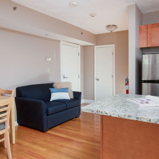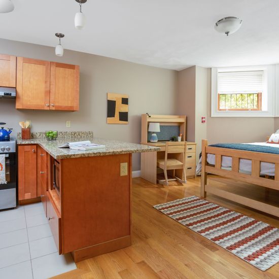 The building sits in BU’s leafy East Campus. At one end, East Campus puts you right at the heart of BU’s Charles River Campus classrooms, labs, libraries, performances, and student amenities. At the other, you’re on the edge of Kenmore Square, a public transportation hub and the gateway to Fenway Park and its surrounding nightlife. Just beyond Kenmore lies Back Bay, with a bevy of upscale dining and shopping options.