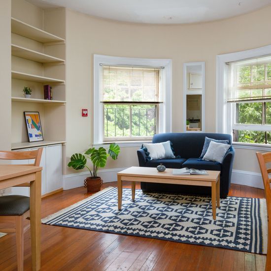The building sits in BU’s leafy East Campus. At one end, East Campus puts you right at the heart of BU’s Charles River Campus classrooms, labs, libraries, performances, and student amenities. At the other, you’re on the edge of Kenmore Square, a public transportation hub and the gateway to Fenway Park and its surrounding nightlife. Just beyond Kenmore lies Back Bay, with a bevy of upscale dining and shopping options.