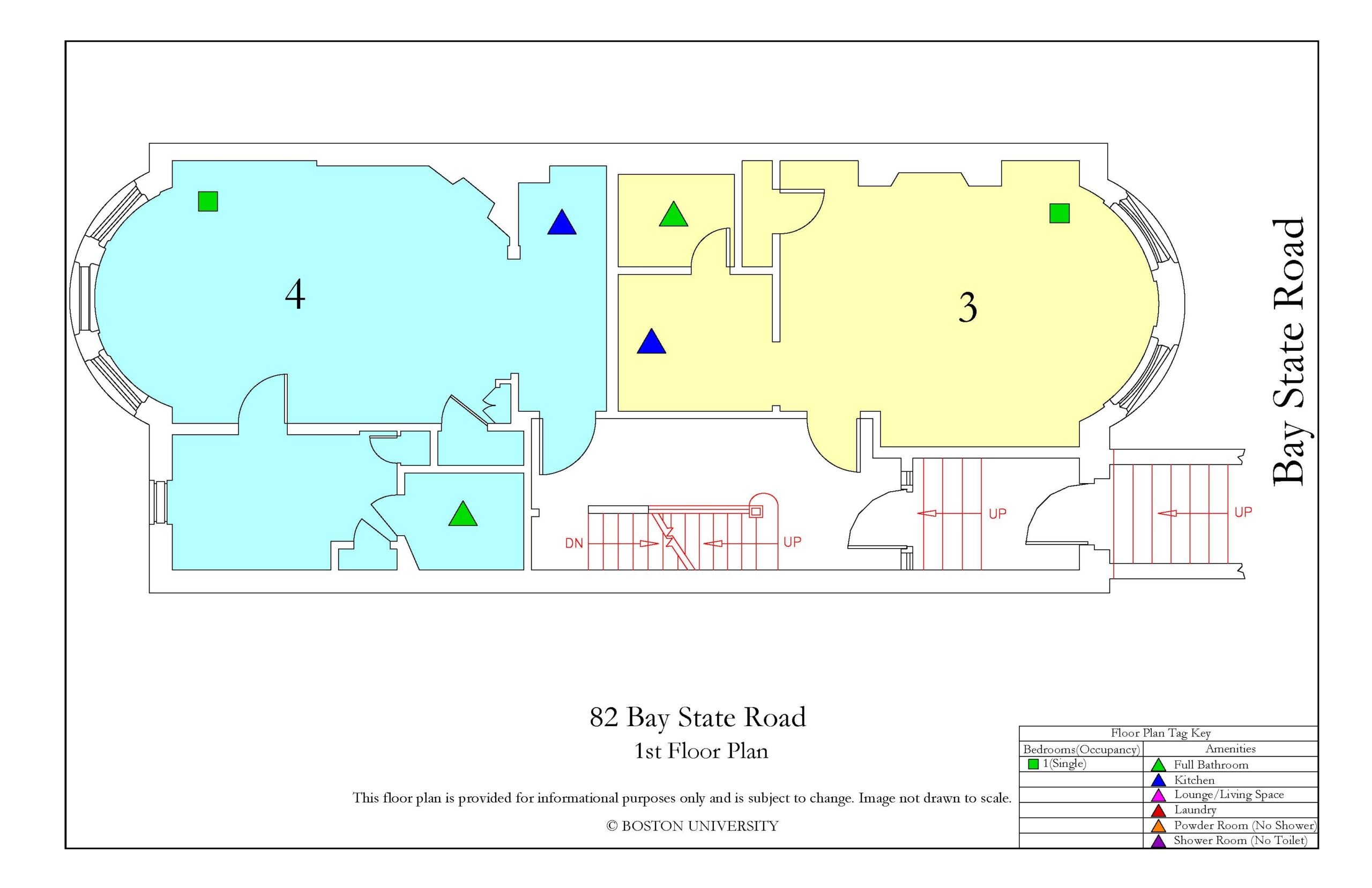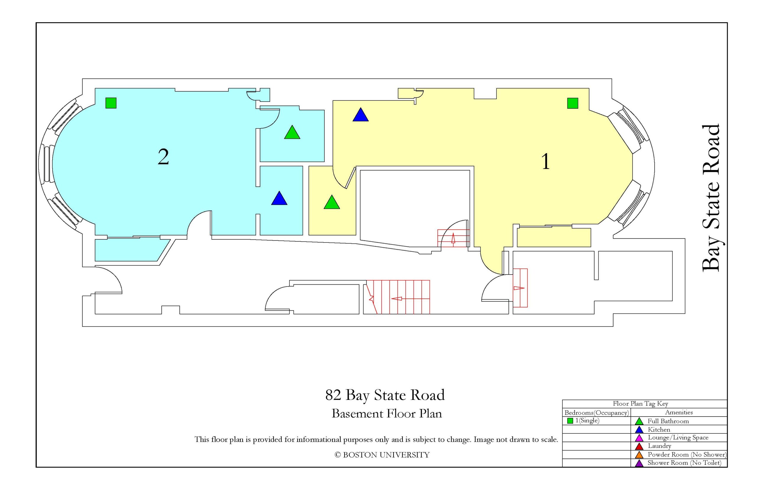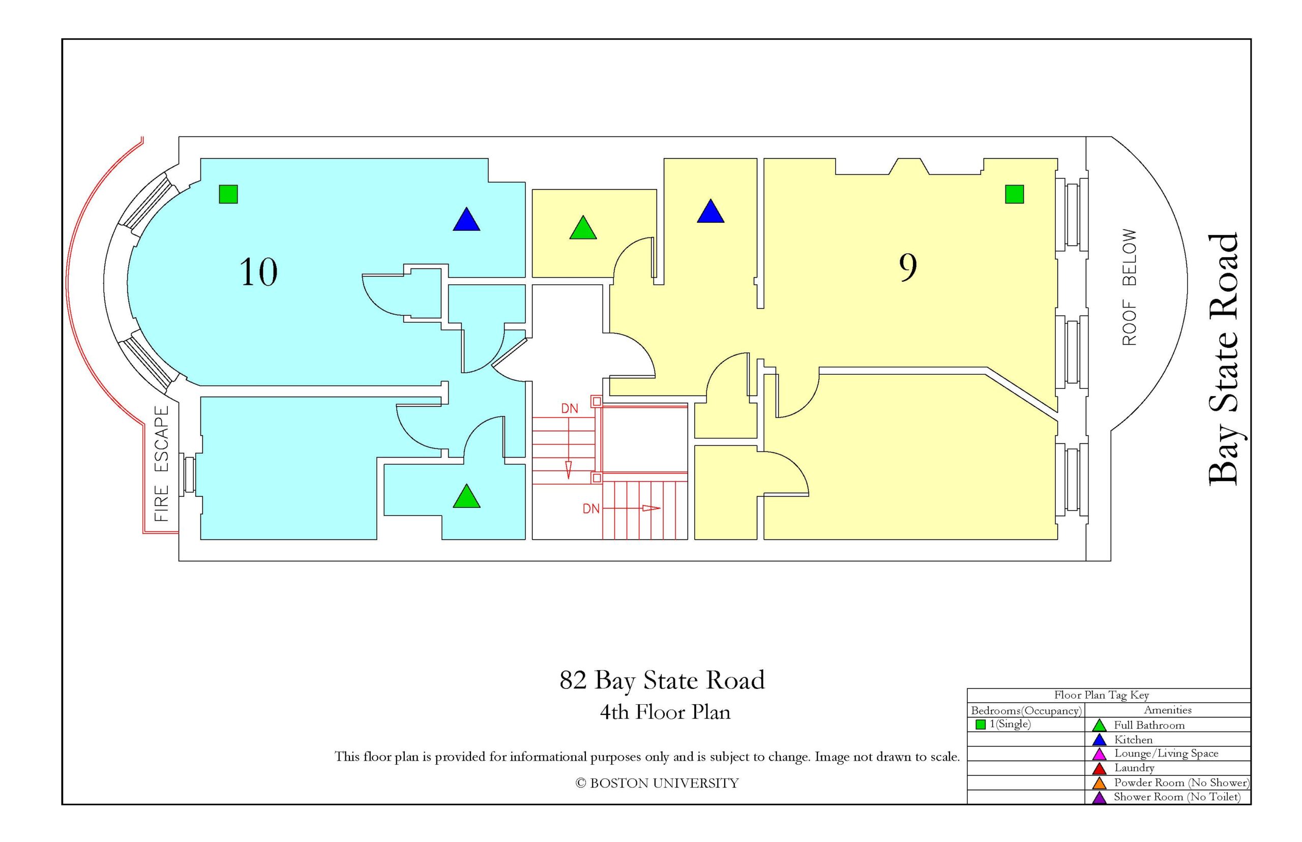 The building sits in BU’s leafy East Campus. At one end, East Campus puts you right at the heart of BU’s Charles River Campus classrooms, labs, libraries, performances, and student amenities. At the other, you’re on the edge of Kenmore Square, a public transportation hub and the gateway to Fenway Park and its surrounding nightlife. Just beyond Kenmore lies Back Bay, with a bevy of upscale dining and shopping options.