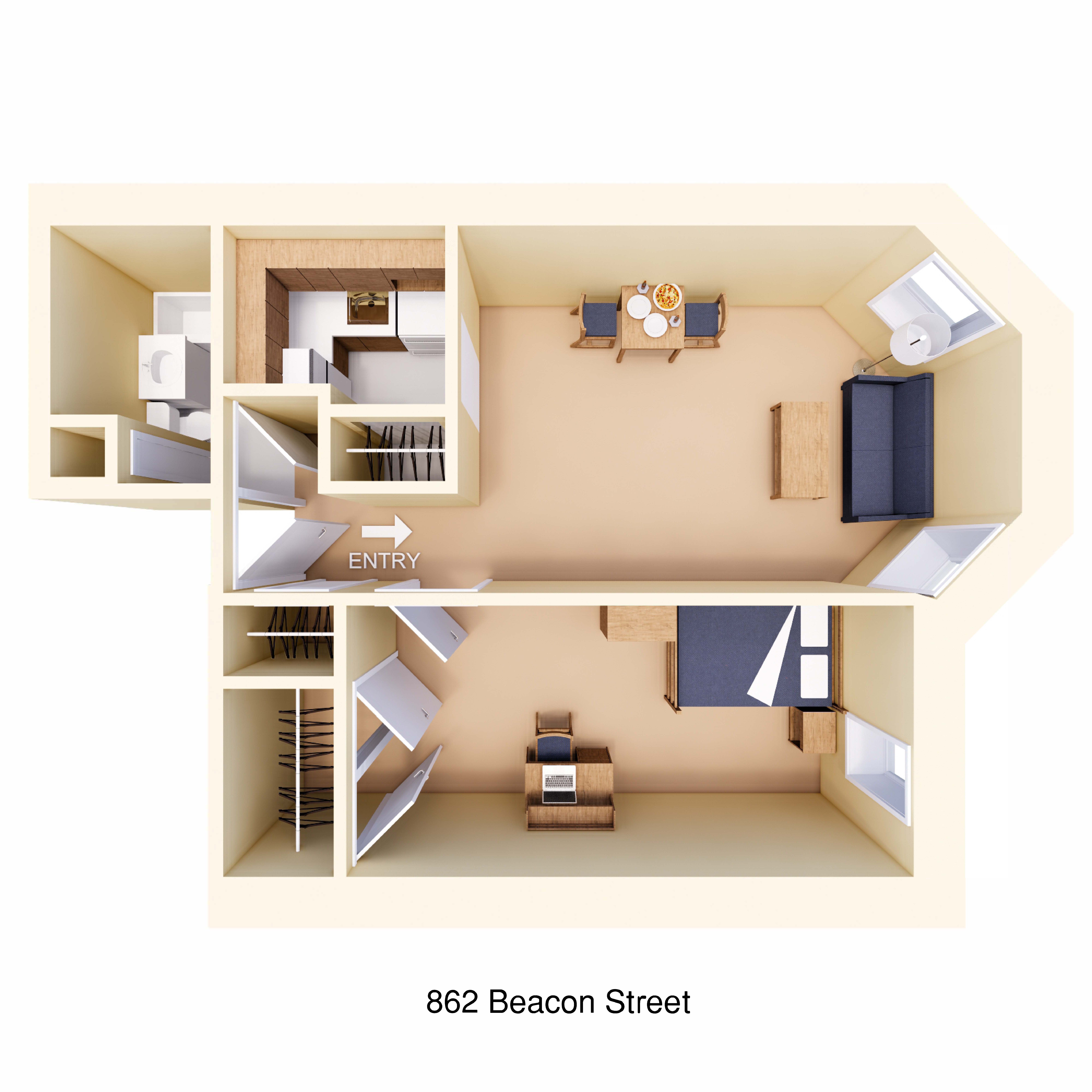 Prefer a quiet area steps from the city bustle but with all the convenience of being on campus? South Campus is a great fit for you! This tranquil, private neighborhood along St. Mary’s and surrounding streets features a mix of families and young professionals, along with plenty of BU neighbors. It offers apartments with en suite bathrooms and kitchens. Central campus is right over the BU Bridge, while a short walk across Beacon Street puts you in the Fenway area. Nearby, you’ll find groceries, restaurants, shops, and more.