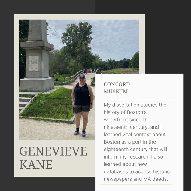 “It was so great to be able to bring my scholarship into this realm of public history and also see the ways in which public history can inform scholarship.” At the Massachusetts Historical Society (MHS), Grace worked to gather sources and create resources that are based on MHS collections for use by K-12 educators. Specifically, she worked on a project that focused on Phillis Wheatley Peters. See Grace talk more about her summer here.