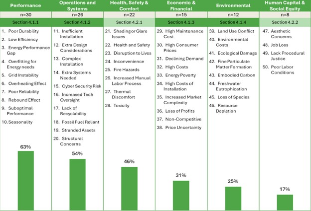 Drawing on a decade of literature, the 50 distinct sociotechnical risks identified in Energy and Buildings span six thematic areas: performance, operations and systems, health, safety, and comfort, economic and financial, environmental, and human capital and social equity.