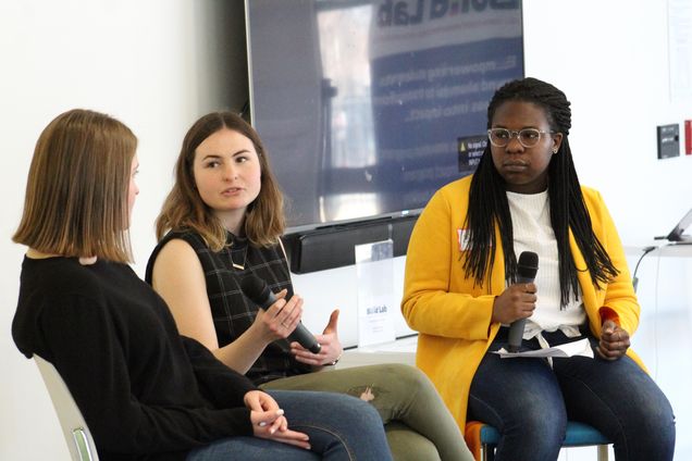 On Wednesday, April 24, Jordan Gutt and Sydney Gullet led Scaling Up: BU Women in Entrepreneurship (below), featuring COM seniors Fiona Whittington, founder of TechTogether, and Emma Johnson, founder of EmJohn Jewelry.