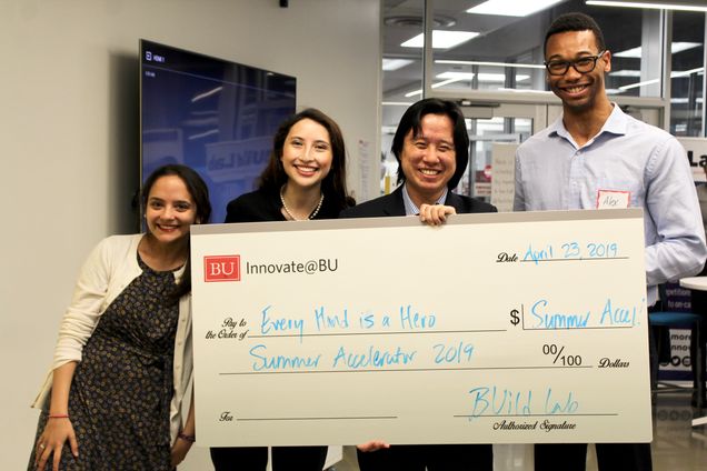 The Global Impact Challenge: Health & Human Rights Hackathon ended with four finalist teams pitching their solutions for some of the world’s biggest challenges and social issues. With just two weeks to finesse their idea and pitch, Every Hand Is A Hero won the grand prize–the remaining spot in the BU Summer Accelerator including a $10,000 stipend. The team’s mission is to develop and launch a media campaign that directs sex trafficking victims and bystanders to resources and encourages more reporting.