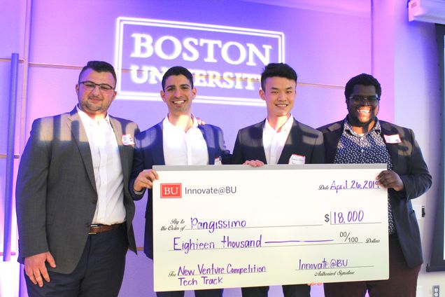 The New Venture Competition came to a close on Friday as the 12 finalists made their last closed pitch to judges. Congratulations to the two grand prize teams that each took home $18,000–Pangissimo (Tech Track), a team of BU engineers that have created modular surround-sound speakers, and Bruzd Foods (Social Impact Track), co-founded by Saloni Shah (CAS’19), offers imperfect produce subscription boxes.