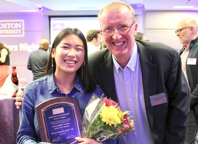 During BU Innovators Night, Questrom senior Shena Lohardjo (below) was awarded Student Innovator of the Year for her incredible work to help launch and oversee the Innovation Pathway program. BU overseer and alumni Cynthia Cohen was presented with the Henry Morgan Award for her ongoing support for innovation and entrepreneurship programs across Boston University. Not only has she provided funding to make the Innovation Pathway program possible, but she dedicates countless hours to mentor BU student and alumni venture teams.