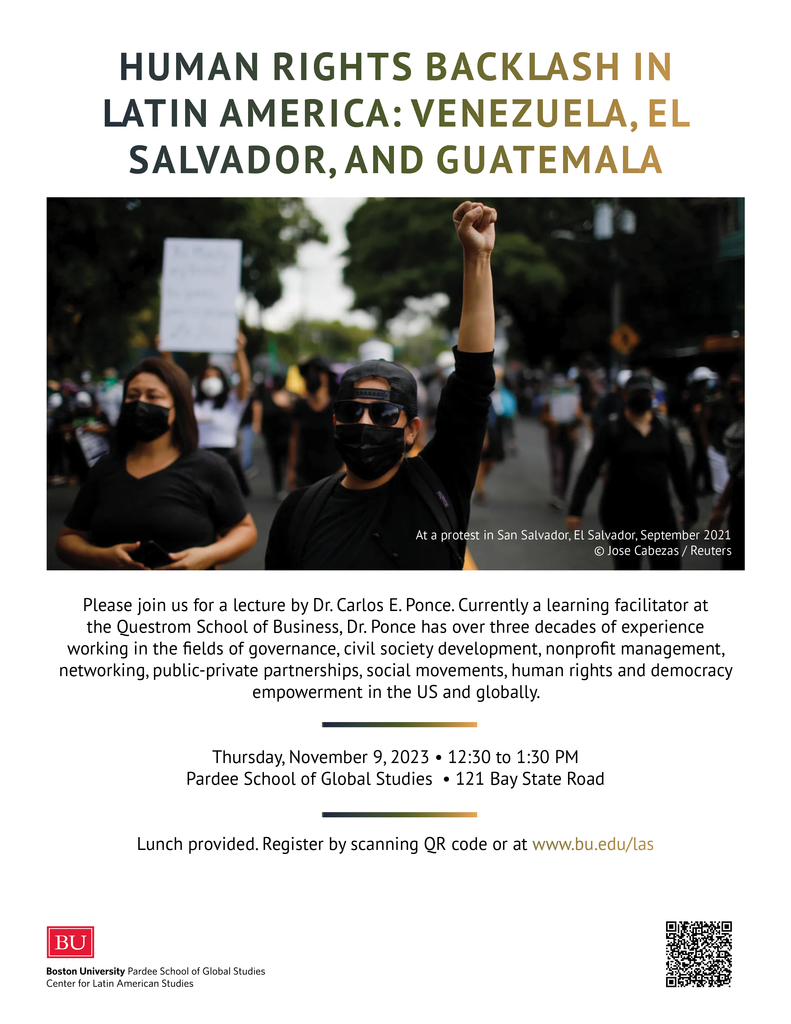 Join us for a talk by Dr. Carlos Ponce on Human Rights Backlash in Latin America: Venezuela, El Salvador, and Guatemala.