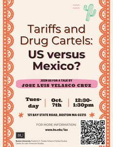 Join us for a talk by Visiting Professor Jose Luis Velasco Cruz about “Tariffs and Drug Cartels: US versus Mexico?”