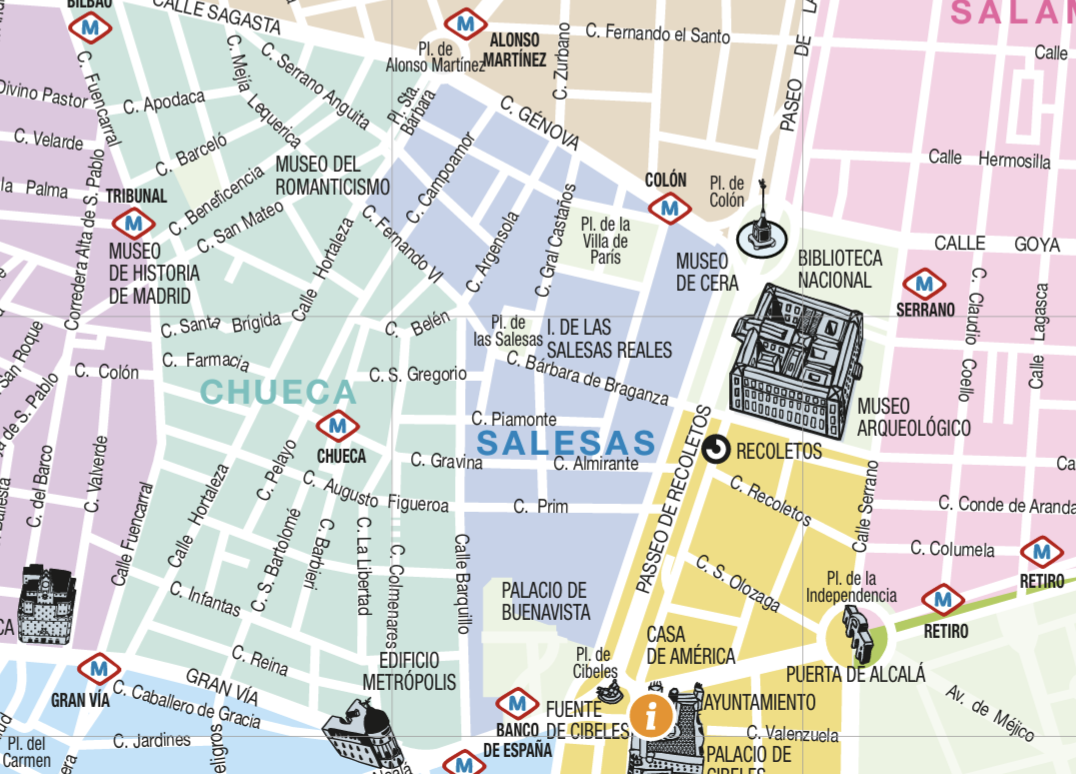 In the deep heart of Madrid, next to Gran Vía, Chueca is globally famous, courtesy of its high-spirited atmosphere and lively nightlife scene. Art and history contribute to its being a tourist attraction as well.
