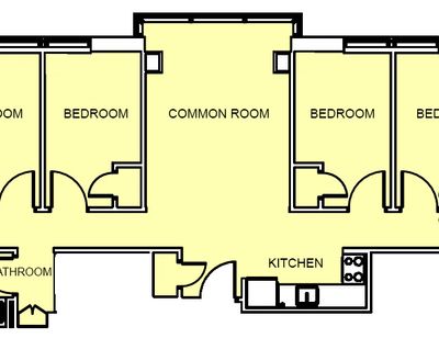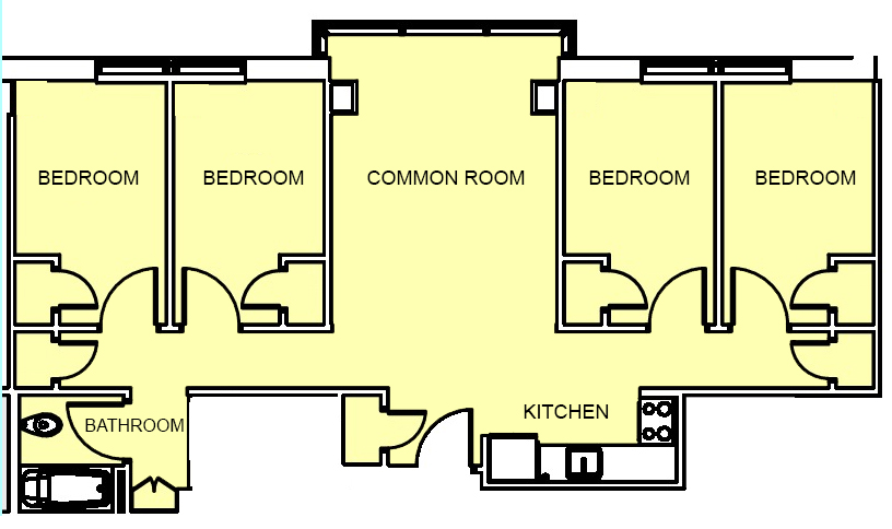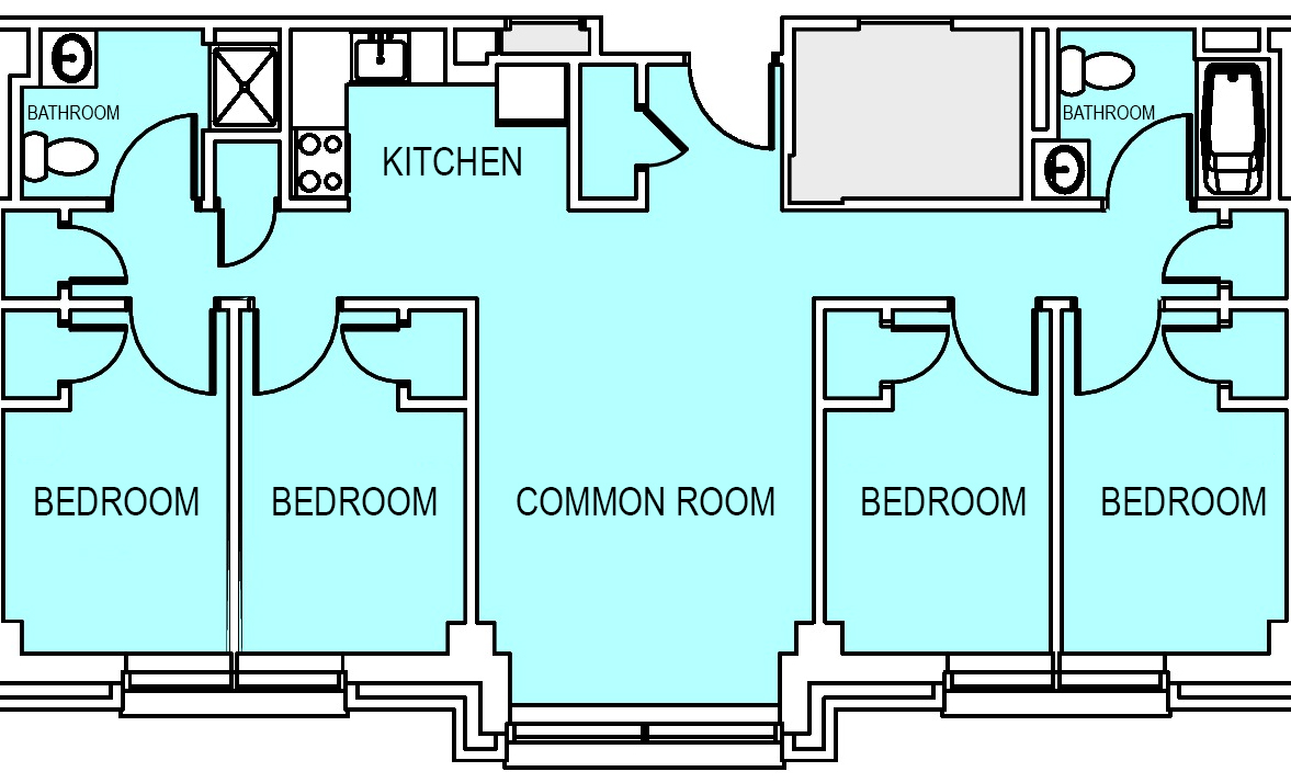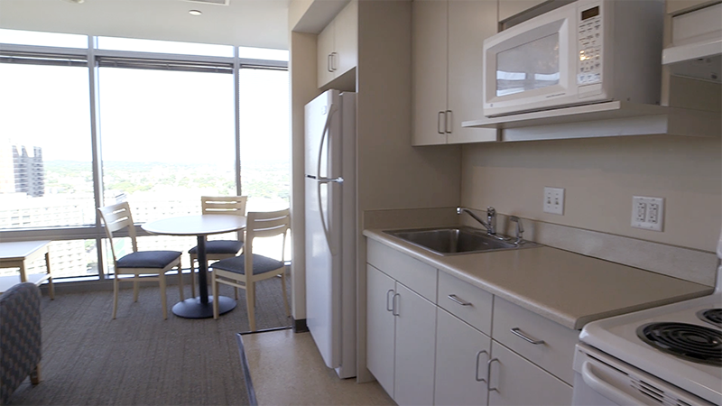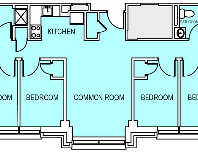 - Single occupancy bedroom — configurations vary and include studios, one-bedroom apartments, or two-bedroom apartments for two interns