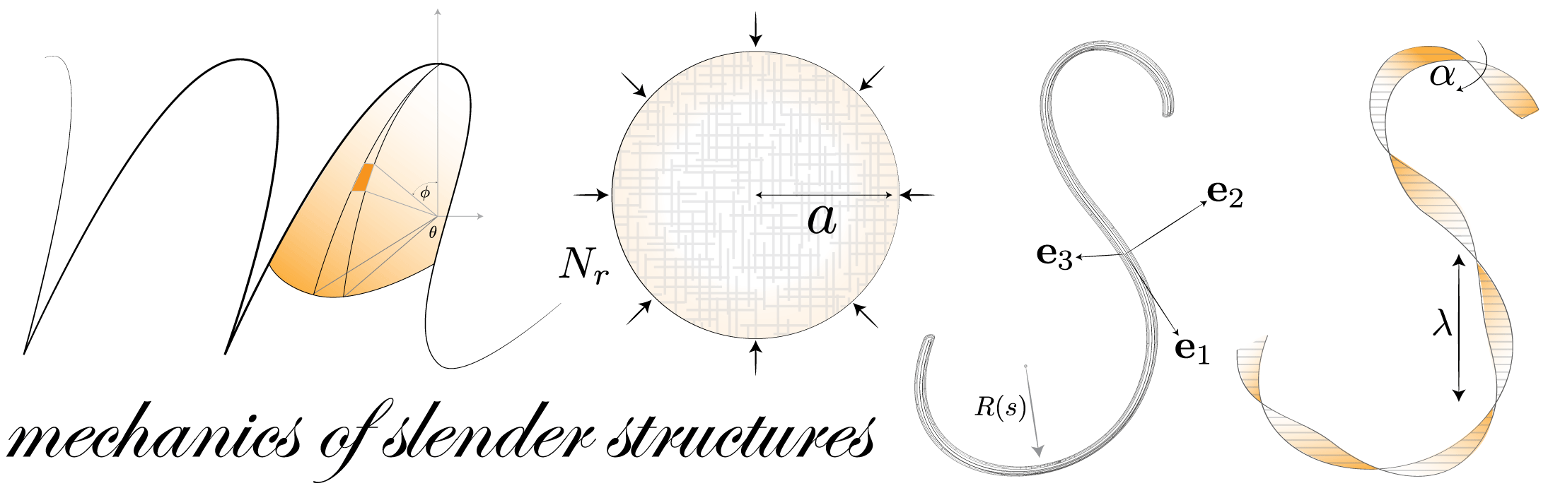 Slender structures are ubiquitous. Commonly described by rods, plates, and shells, these thin structures are embodied by carbon nanotubes, air plane wings, blood vessels, spider silk, contact lenses, and human hair. The mechanics of these thin objects are fascinating because geometric nonlinearities will arise even as the material properties remain linear – hair will curl and tangle, skin will wrinkle, nanotubes can bend and buckle, and spider webs will elongate to several times their original length. We are interested in understanding and controlling the mechanics, physics, and geometry of these thin structures, and our lab aims to harness material and structural instability for advanced functionality.