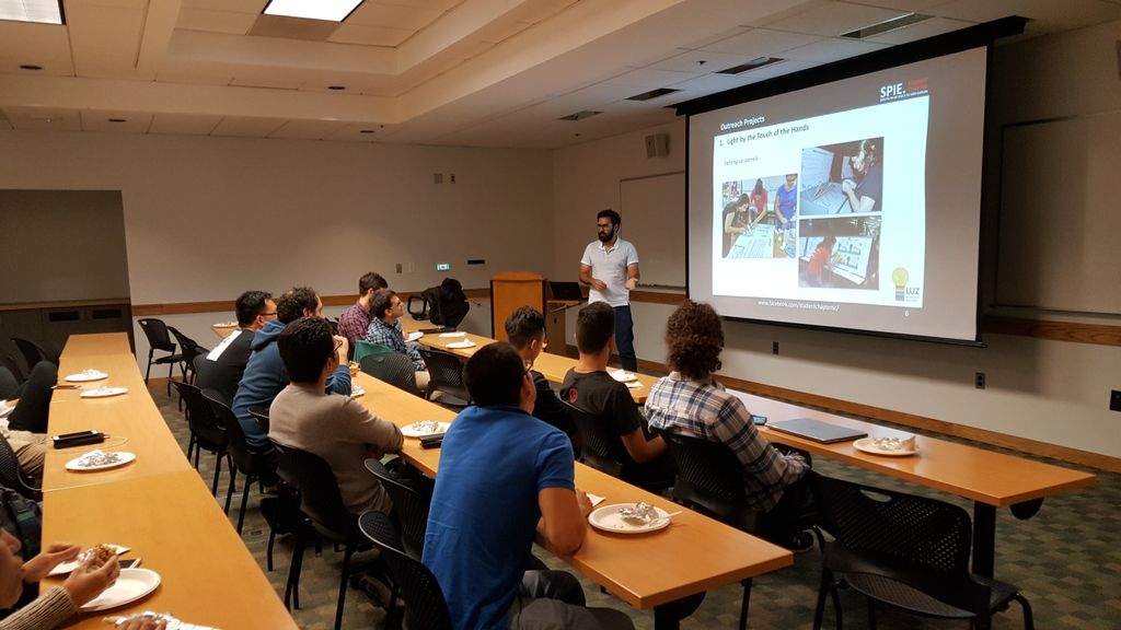 Visiting member Renan talks to our chapter about his chapter's work in São Carlos, Brazil