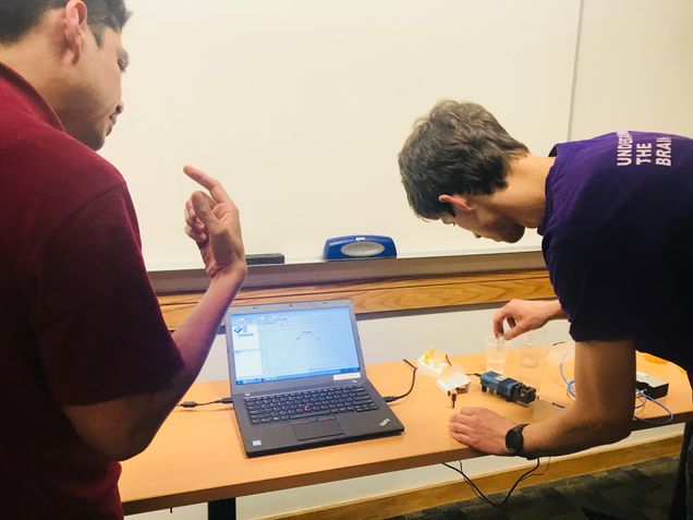 Members explore the absorption and scattering of liquids through spectroscopy during our summer social