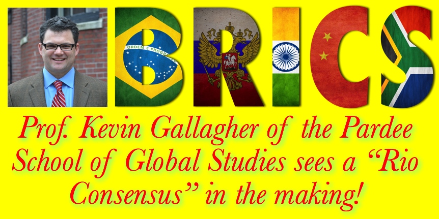 As the leaders of the worl’s most important emerging economies – the BRICS: Brazil, Russia, India, China and South Africa – move directly from the gala of the Football World Cup in Brazil to the BRICS Summit, also in Brazil’s coastal city, Fortaleze, Prof. Kevin Gallagher of the Boston University Frederick S. Pardee School of Global Studies – one of the leading experts on Latin America-China relations – is all over the press with his commentary on what could be a truly historic opportunity for BRICS and beyond.