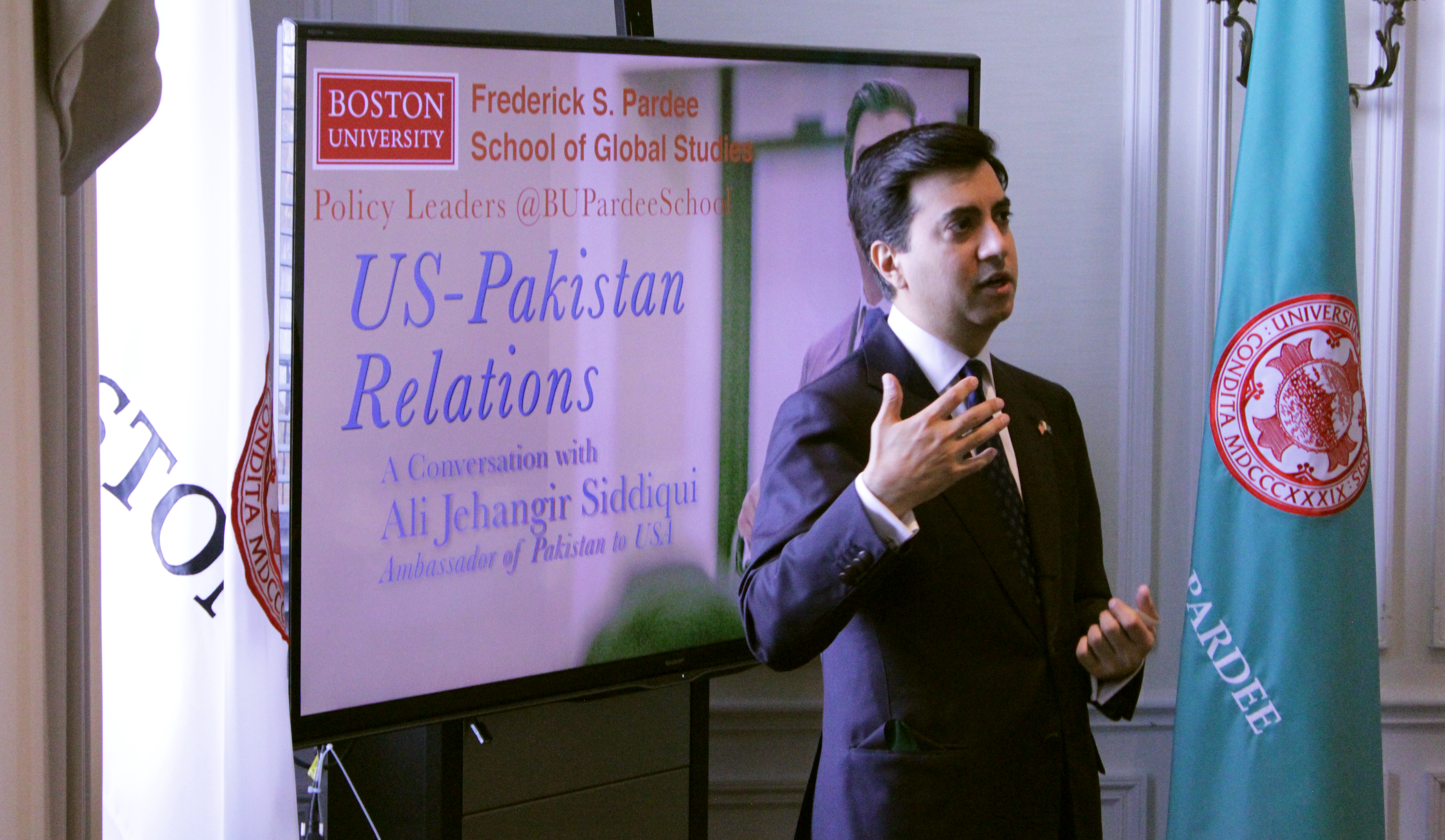 The Frederick S. Pardee School of Global Studies at Boston University hosted Amb. Ali Jehangir Siddiqui, the Ambassador of Pakistan to the United States, on November 29, 2018 for a discussion on a range of topics including the current state and future of relations between the U.S. and Pakistan.