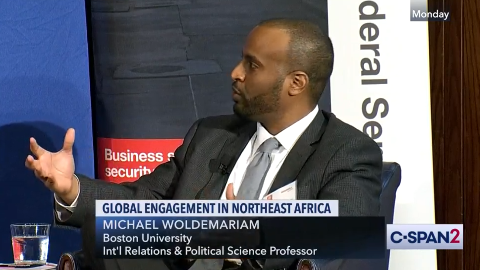 Michael Woldemariam, Assistant Professor of International Relations and Political Science at the Frederick S. Pardee School of Global Studies at Boston University, spoke as part of a May 20, 2019 panel hosted by the Middle East Institute on global political and economic engagement on the Horn of Africa. The conference was aired on C-Span.