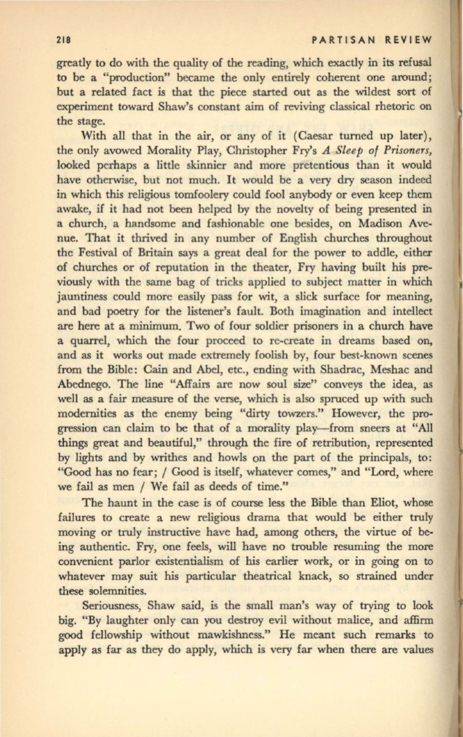 the only avowed Morality Play, Christopher Fry's
