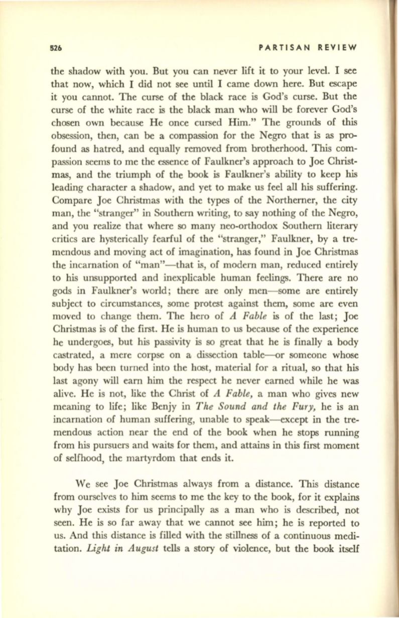 passion seems to me the essence of Faulkner's approach to Joe Christ–