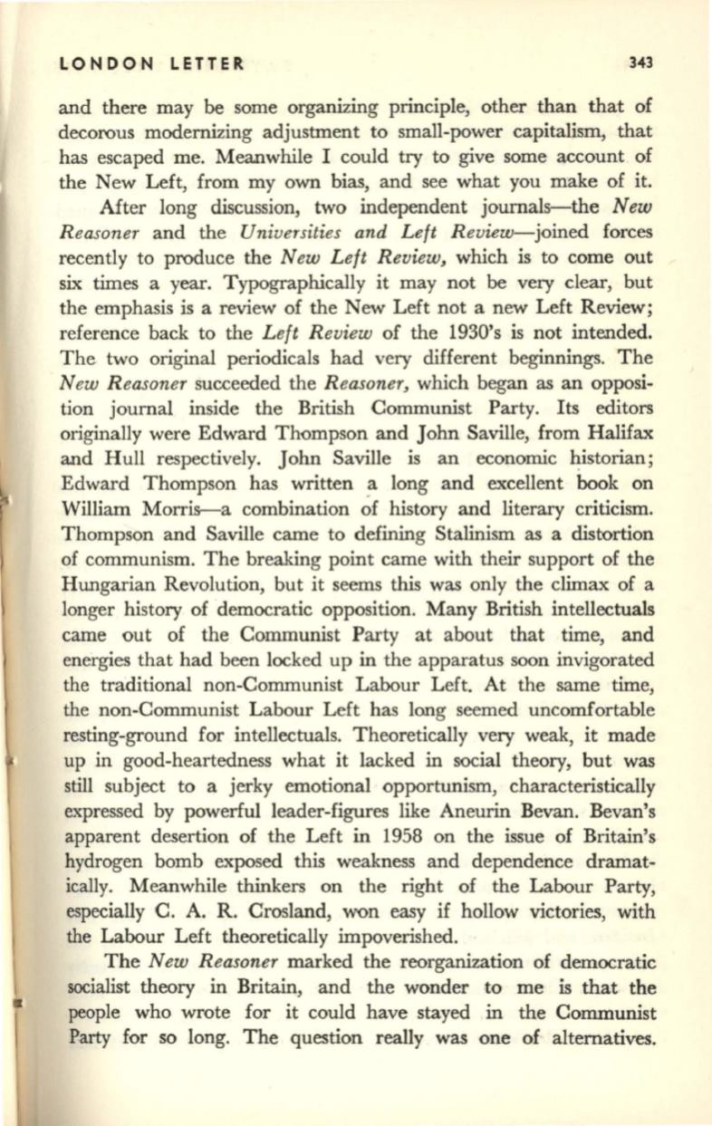 the emphasis is a review of the New Left not a new Left Review;