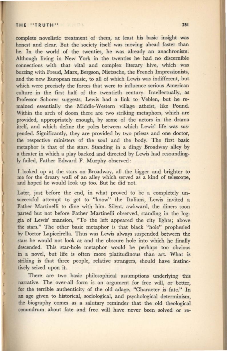 Professor Schorer suggests, Lewis had a link to Veblen, but he re–