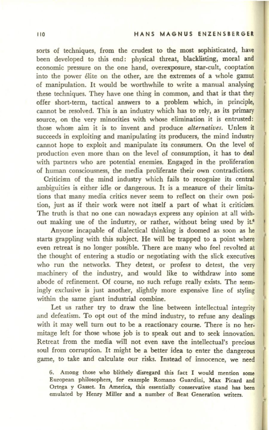 and defeatism. To opt out of the mind industry, to refuse any dealings