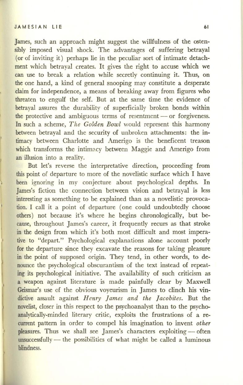 Geismar's use of the obvious voyeurism in James to clinch his vin–