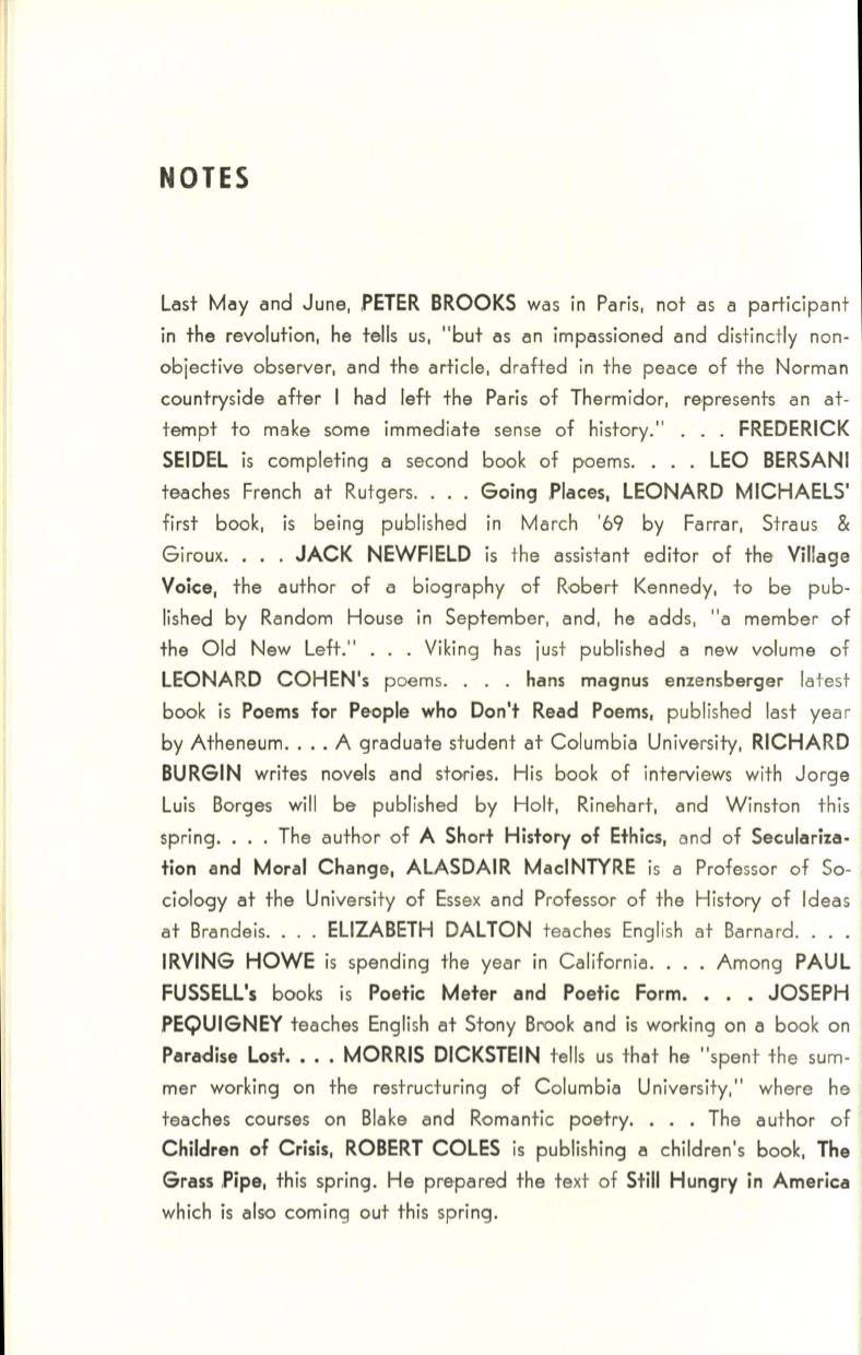 SEIDEL is completing a second book of poems.... LEO BERSANI