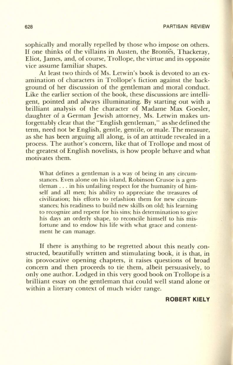 Eliot, James, and, of course, Trollope, the virtue and its opposite