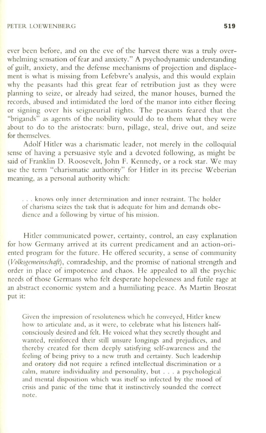 use the term "charismatic authority" for Hitler in its precise Weberian