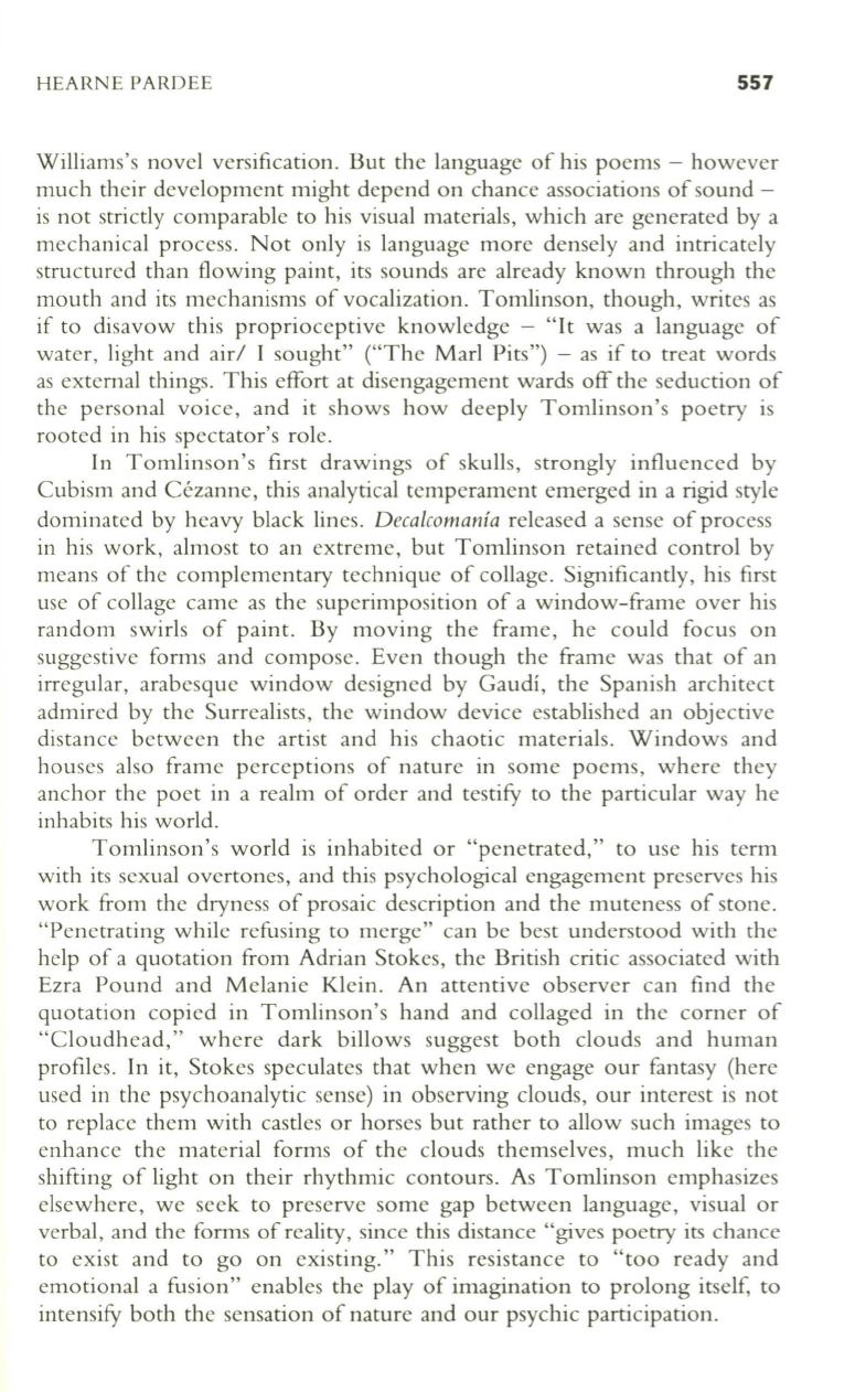 the personal voice, and it shows how deeply Tomlinson's poetry is