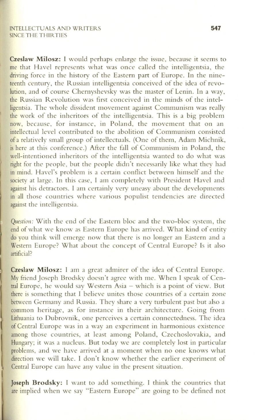 friend Joseph Brodsky doesn't agree with me. When I speak of Cen–