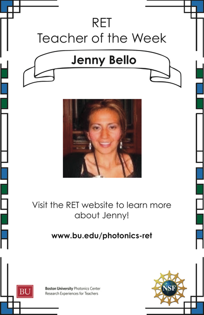 Starting our RET Teacher of the Week is Jenny Bello from West Roxbury High School! Bello teaches biology to 10th graders and is very excited to apply what she learns in the RET program to her own curriculum. She also wants to increase public awareness about STEM education in the community.
