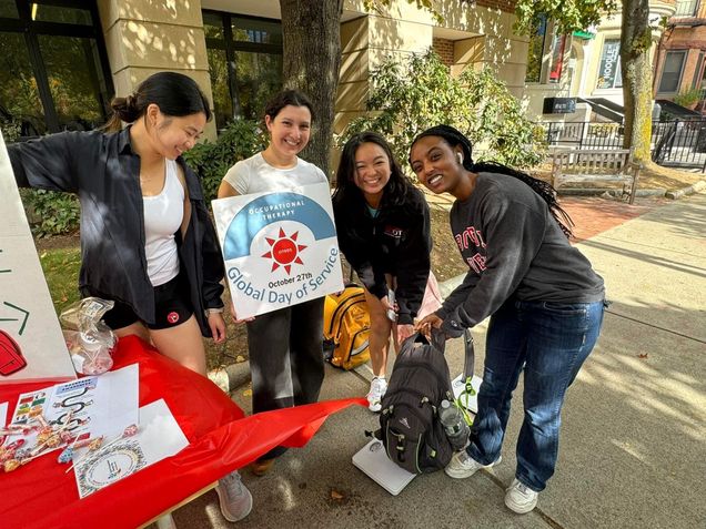 On Friday October 27, our Occupational Therapy students and faculty celebrated International Backpack Awareness Day and World OT Day with a backpack weigh-in on Comm. Ave., where they shared tips about backpack safety.