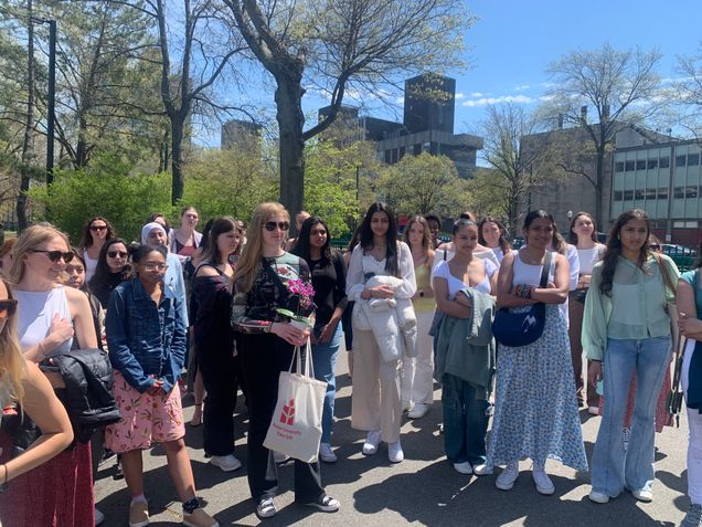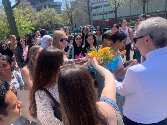 Sargent has a long tradition of welcoming students with a ceremony where they place a yellow rose petal into a box with their class year. At the end of senior year, students come together to scatter the petals in the Charles River, a gesture symbolizing they are moving on to a new path to share their knowledge and compassion with the world.