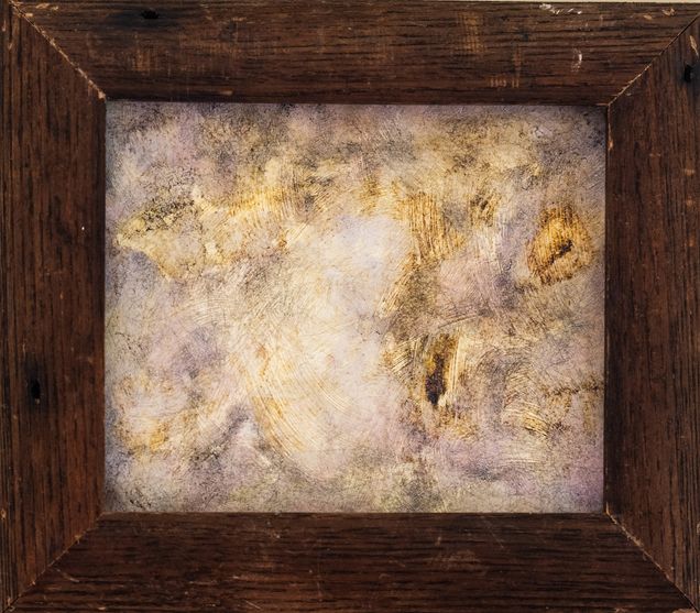 Yellow Panel, Cigar panel, ballpoint, oil, chestnut crown molding