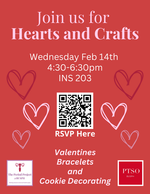 Join the PTSO and the Period Project on Valentines Day for a Hearts and Crafts party! We will be making valentines, bracelets, and decorating cookies. Join us Wednesday Feb 14th from 4:30-6:30pm in INS 203. RSVP here!