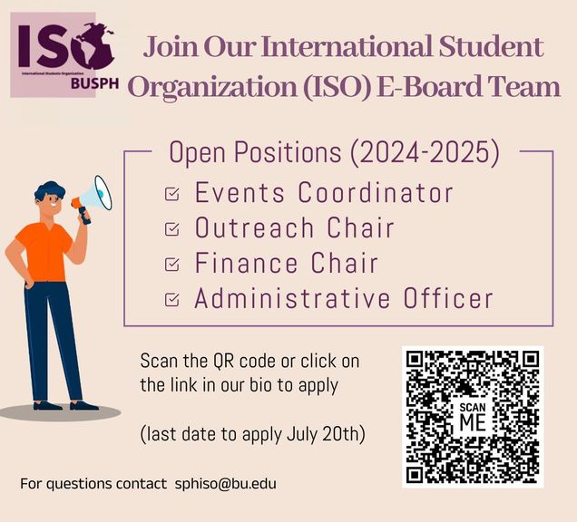 Join the ISO 24-25 Team! Open Positions: Event Coordinator, Outreach Chair, Finance Chair, Administrative Officer. Apply by July 20th, 2024. Scan the QR code or click here to apply. Looking forward to hearing from you!