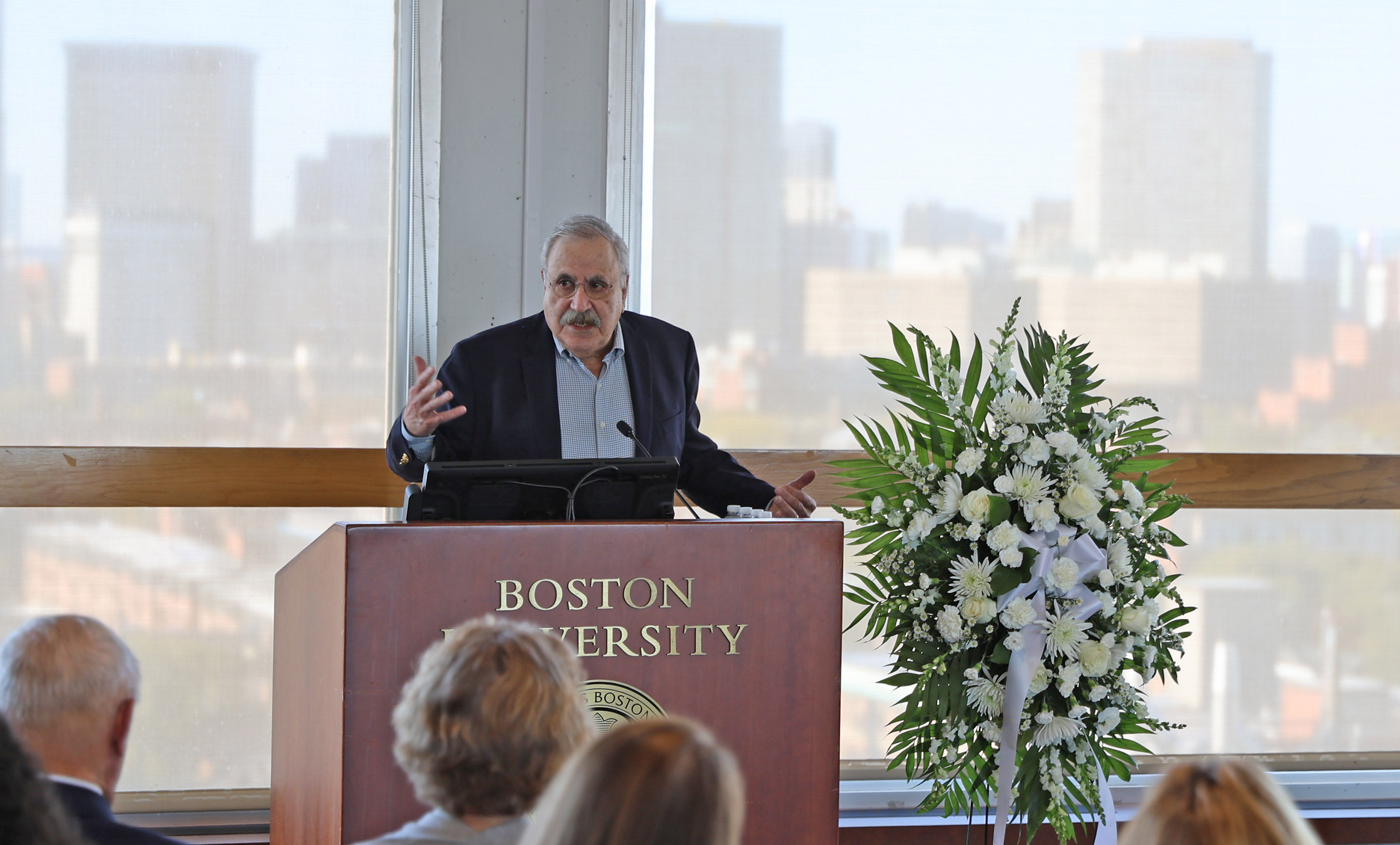Michael Stein, chair of the Department of Health Law, Policy and Management, generated a few heartfelt laughs by recounting several of Annas’s stand-up comedy bits. “His routines were joyful, whether you thought they were funny or not,” Stein said. “He liked to make people laugh, he liked to make himself laugh. He was an absurdist, which meant telling things about the world that were ridiculous but true.”