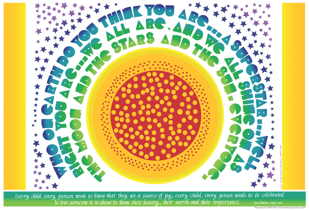 His art reflects the strong heritage of storytelling he inherited from his Mexican mother and Swedish father. John August Swanson’s narrative is direct and easily understood. He addresses human values, cultural roots, and a quest for self discovery through visual images and impactful text quotations spoken by prominent theologians, philosophers, and activists speaking out for equality for all people. He also shows us how our own stories, living as everyday citizens of the world can be transformational. All his parables optimistically , and colorfully, encourage us to embrace life and one’s spiritual transformation.