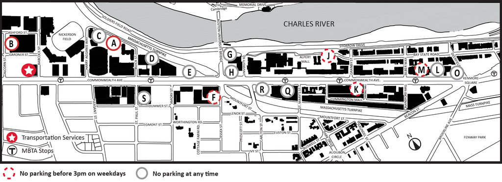 240 Bay State RoadPermits accepted: Employee Commuter, Employee Flex, Employee Off-Peak Commuter, Evening Faculty, Student Commuter (after 3 pm), Student Flex (after 3 pm), Student Evening Commuter